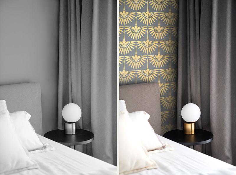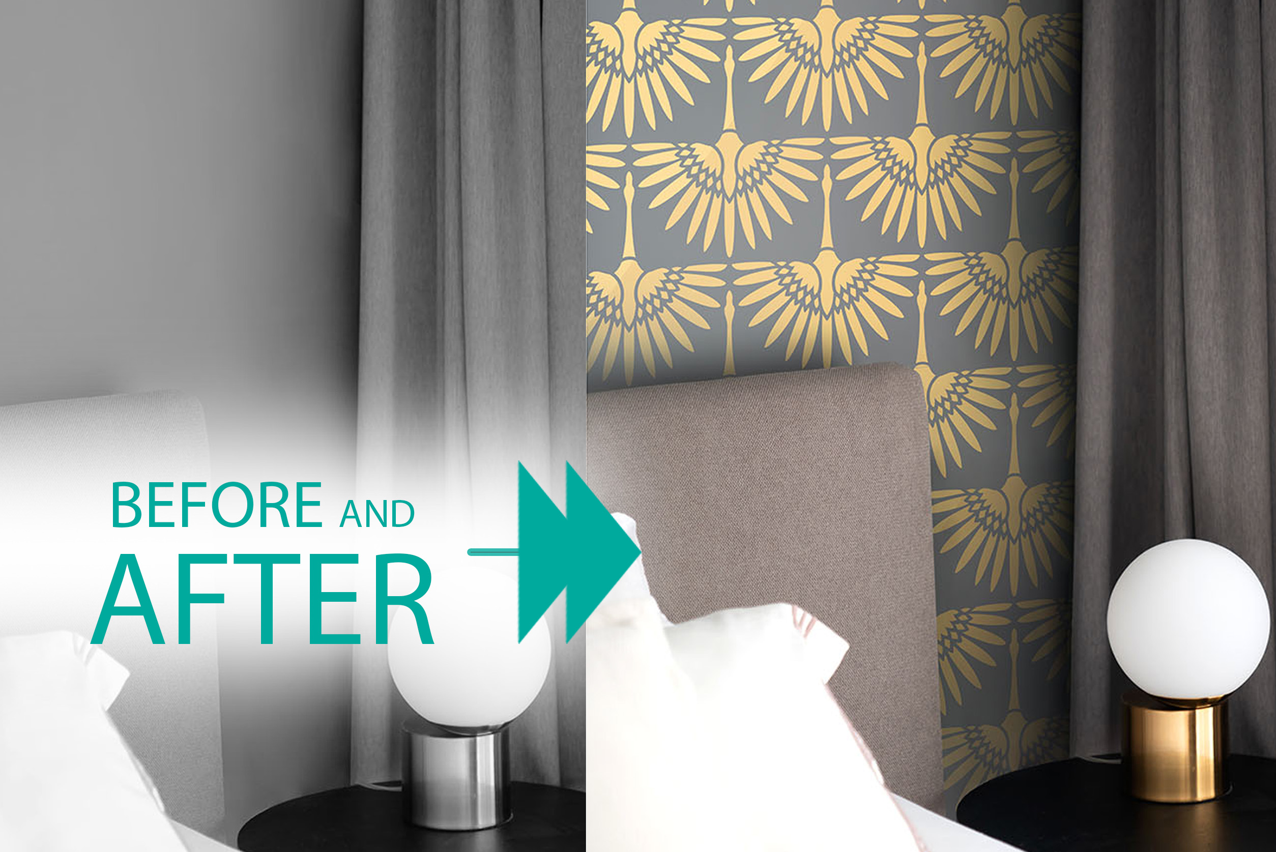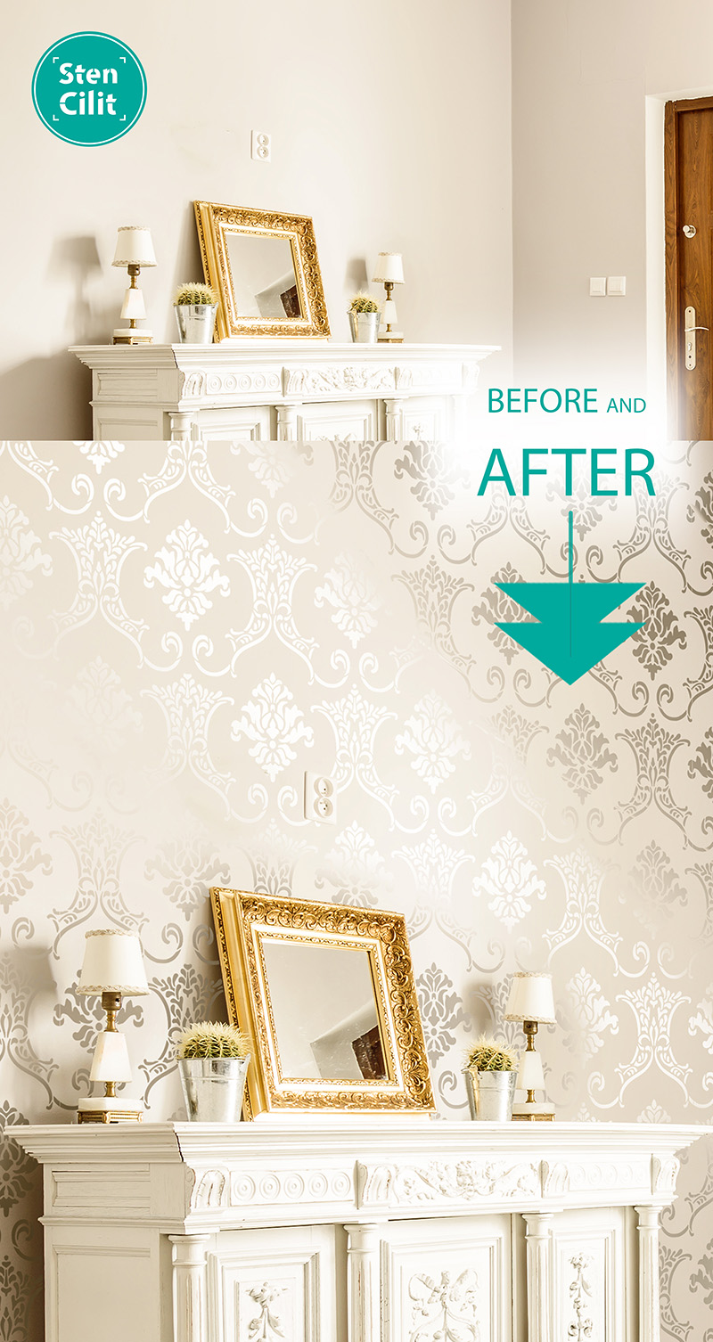 Our Virtual Wall Design Service provides a custom, to-scale visualization of your chosen stencil (or wallpaper) placed directly onto your own photo of the wall – with selected color direction to help you decide with confidence.